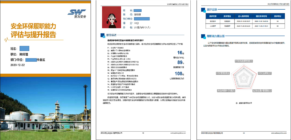 精準(zhǔn)評(píng)判每一個(gè)人“安全履職能力”,系統(tǒng)自動(dòng)輸出“個(gè)人安全履職能力報(bào)告” (見(jiàn)下圖) | |||||||