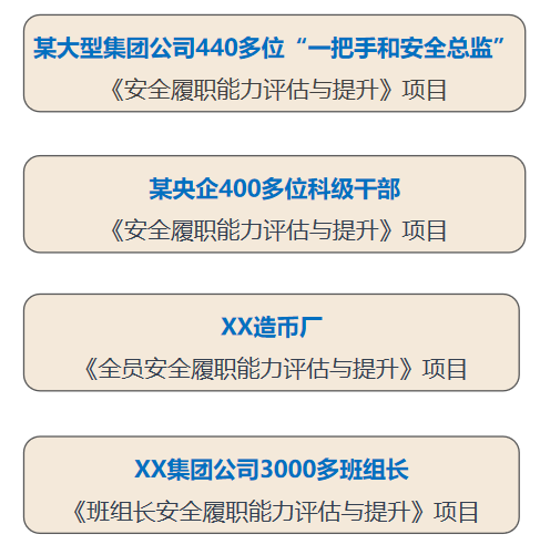 緊緊圍繞以“高層管理層安全領(lǐng)導(dǎo)力”建設(shè)為核心,從四個(gè)層次系統(tǒng)打造企業(yè)“安全履職能力建設(shè)”,有效提升企業(yè)安全管理績(jī)效水平。 | |||||||